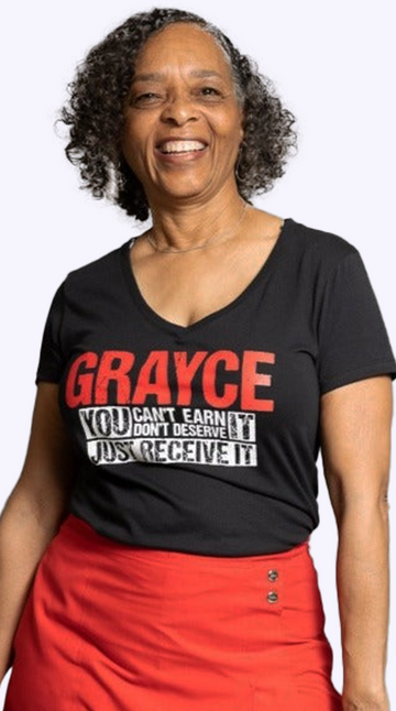 GRAYCE You Can't Earn It You Don't Deserve It V-Neck Tee Make a bold yet...